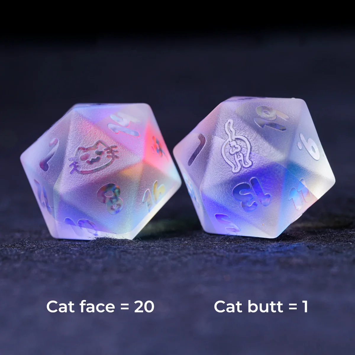 Kitty Engraved Dichroic Prism K9 Glass Dice Set