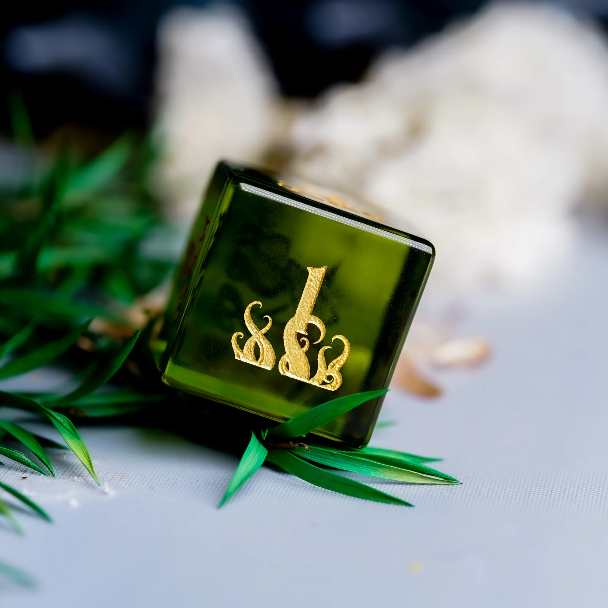 Cthulhu’s Touch · Peridot Engraved Gemstone Dice Set